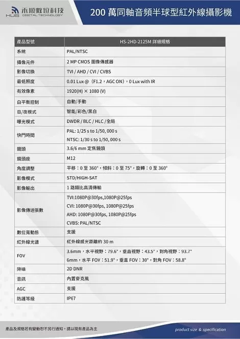 200萬畫素同軸音頻半球型紅外線攝影機(HS-2HD-2125M)