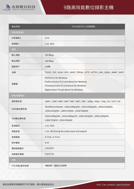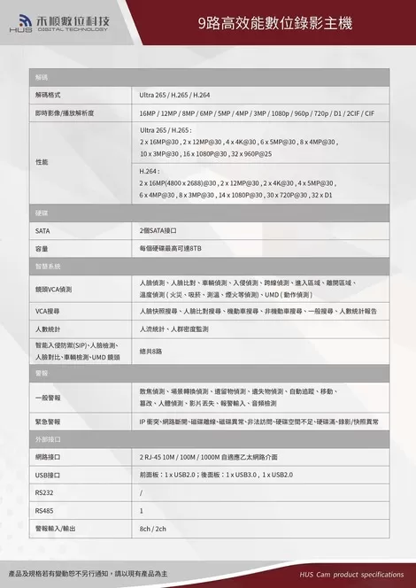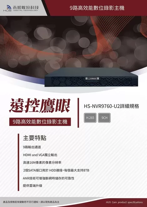 9路監視器主機 九路數位錄影監控主機(HS-NVR9760-U2)