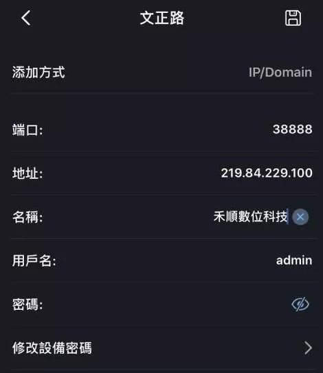 以上如果查詢到的目前使用的固定IP位址後,若正在使用的IP位置和我們手機APP上面設定的是不同的話,那我們就必須去修改我們APP裡面設定的IP
