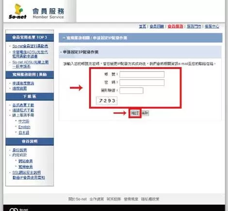 【步驟三】輸入 [ 帳號 ] 、 [ 密碼 ] 、 [ 圖形驗證 ] , 就可以知道你的固定ip了