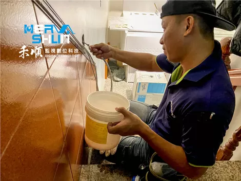 兩位師傅要先確認管線的狀況才能去進行拉線