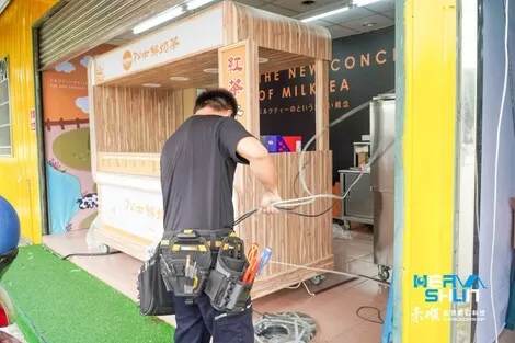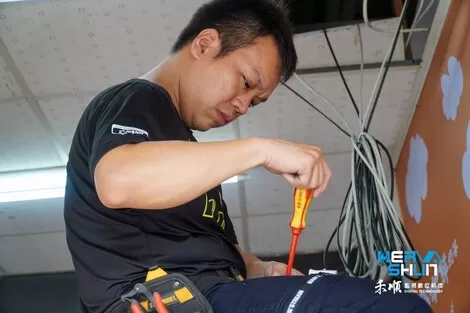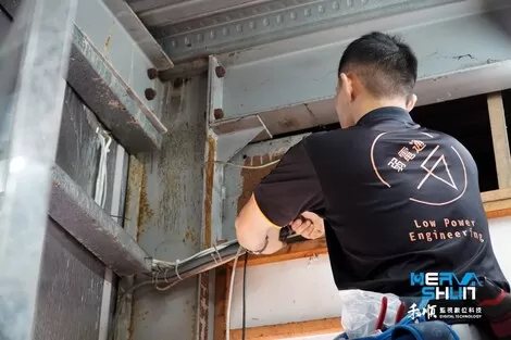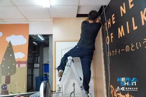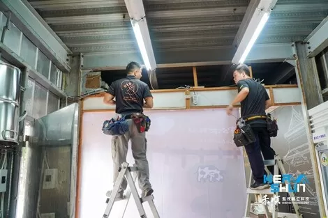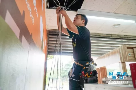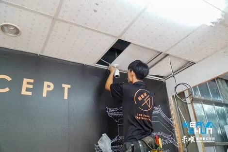 工程師要先將天花板移開把線路繞過去,再去做拉線