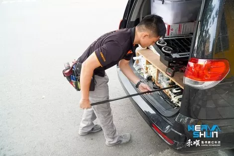 此時工程師跑去車上拿了兩條壓條