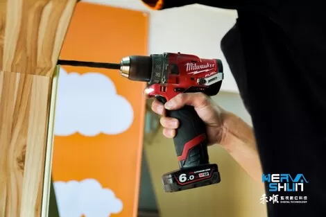 再來使用米沃奇電鑽鑽洞