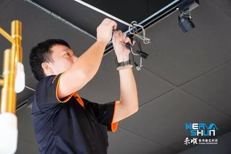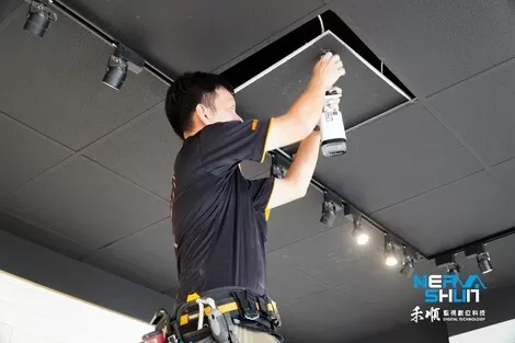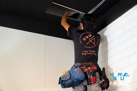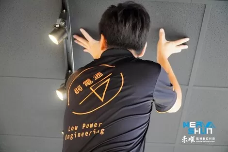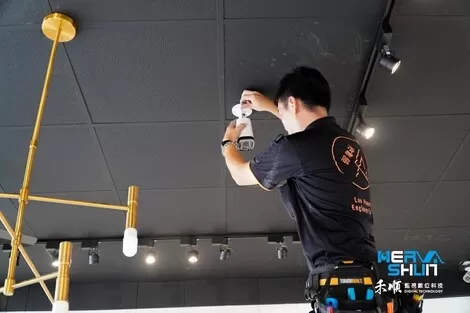 這位工程師是要做收銀正上方的監視器安裝了