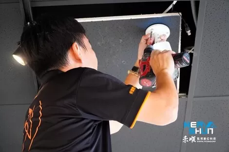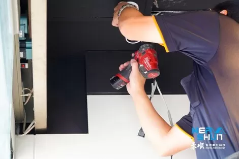 將天花板鑽個洞讓監視器比較好穿