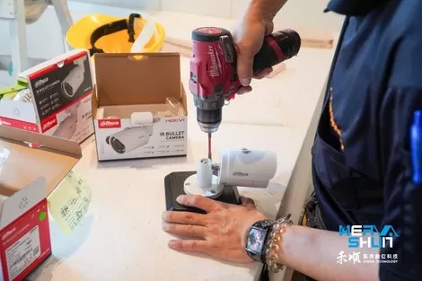 另一邊則已經將線路做好,要用電鑽將監視器鎖上去