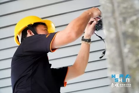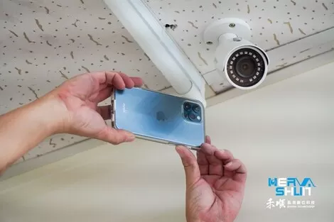 再來工程師拿出泡棉膠????貼在監視器防水盒上面?