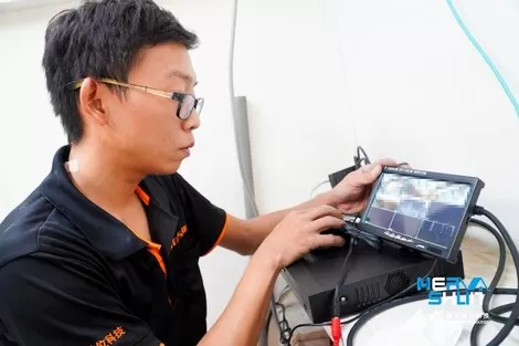 而後客戶抵達現場,工程師講解現場監視器畫面