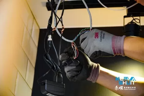 接著工程師用手電筒 開始找上次拉的線路