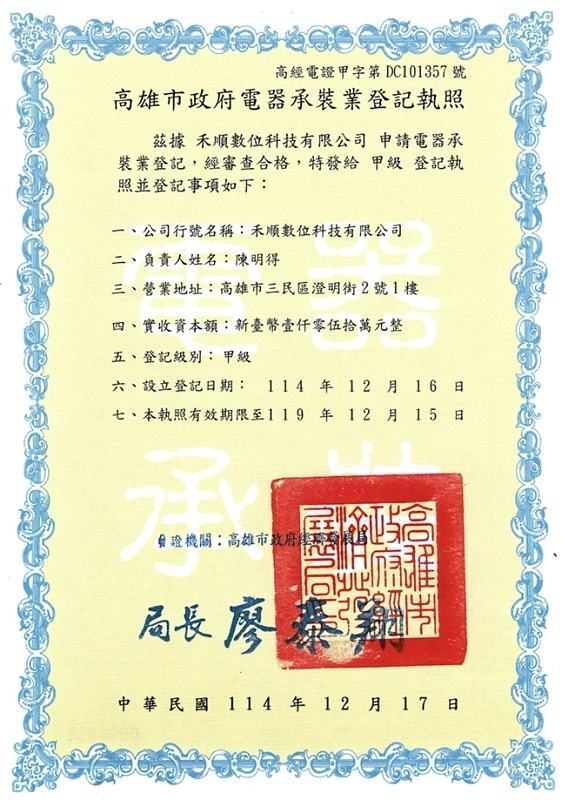 【禾順團隊具備專業執照、證照,多項專業技能證明】