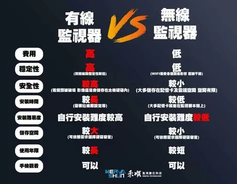 如果以保安監控來看的話,選擇持久性和穩定性高的有線監視器會較適合,當然如果公司、大樓室內想要安裝無線監視器也不是不行