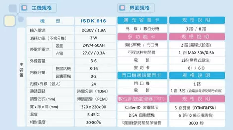 首先在選擇時,一定要先考慮到「擴充性」,以下圖的聯盟電話總機ISDK-616來說,它的基本容量為3外線8內線,最大可擴充到6外線16內線。