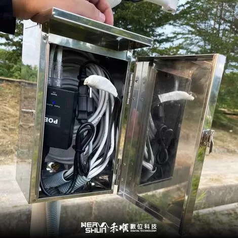 農園其他角度的鏡頭也安裝完成,下方使用小型防水白鐵箱將電源與線路收容整理在一起