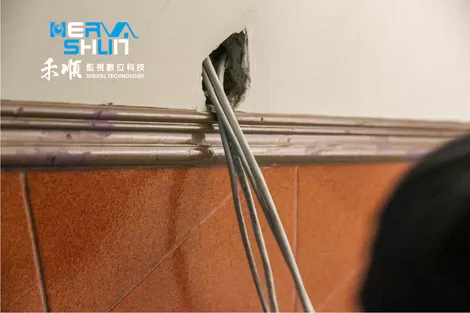 由於施工的不只是一樓,還有二樓的部分也需要裝設監視器,所以管線要拉到二樓。