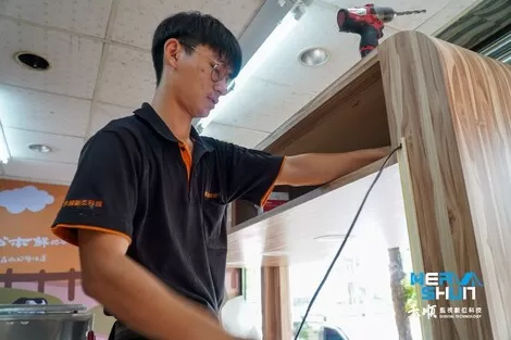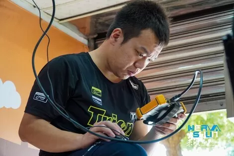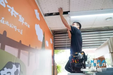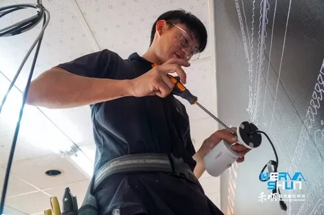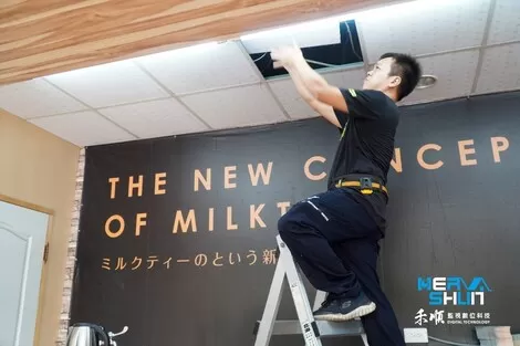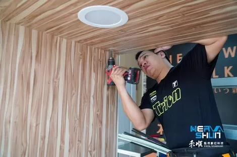 工程師要先將天花板移開把線路繞過去,再去做拉線