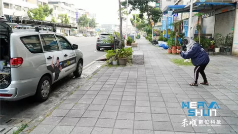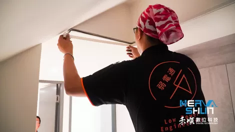再來要貼上去監視器防水盒時,工程師會先測量高度、大概壓條的位置