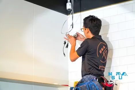 接著收銀檯上方的監視器也鑽好孔裝上設備